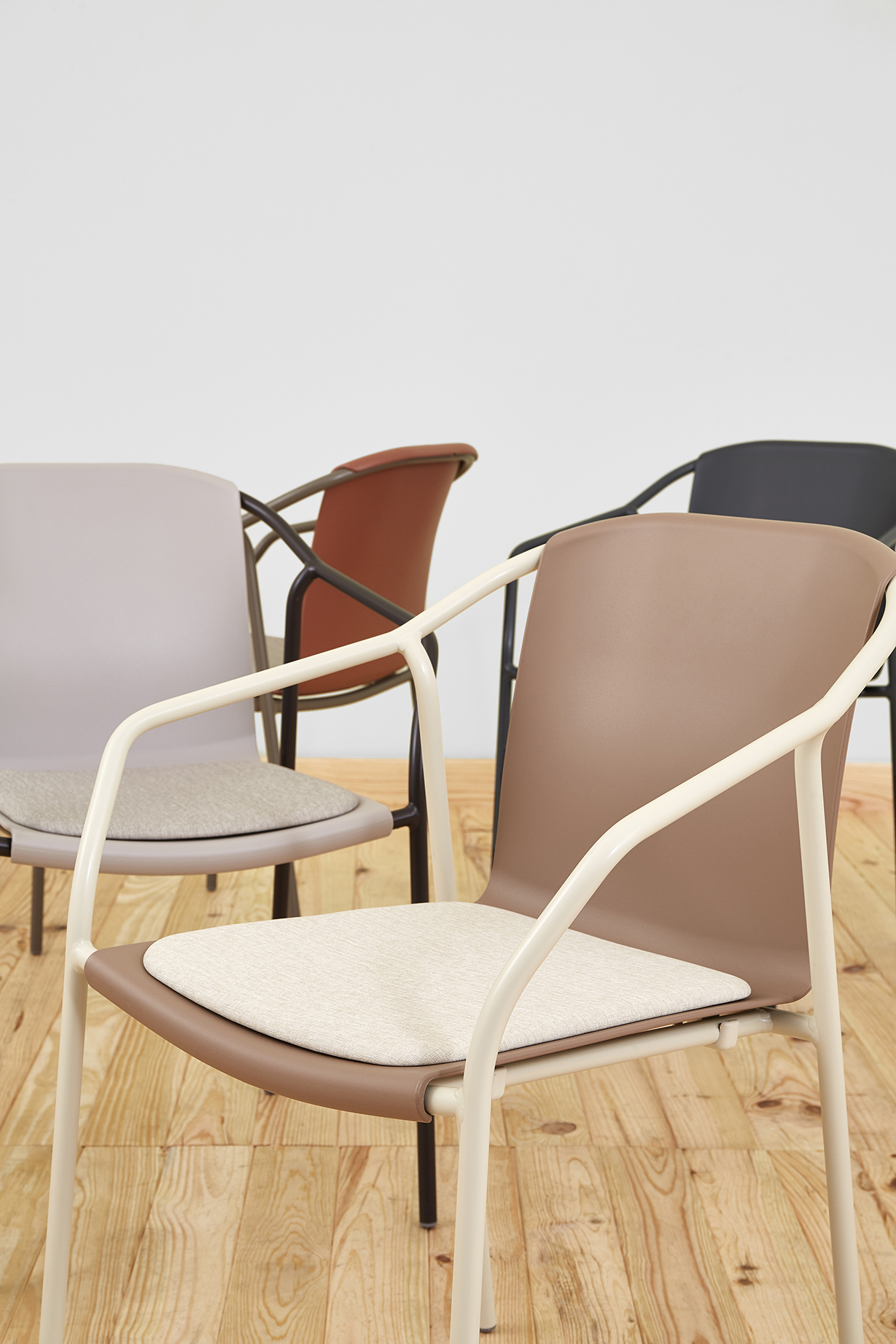 Cadeira com braços para uso em interior.