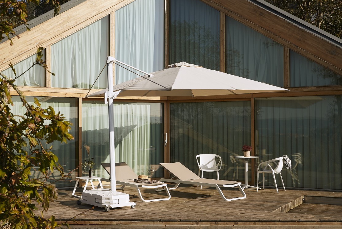 Aproveite o espaço do seu terraço graças ao guarda-sol FLEXO com haste lateral.